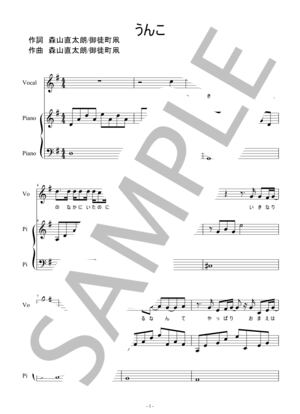 森山直太朗「うんこ」弾き語りピアノ楽譜です 歌詞付きです